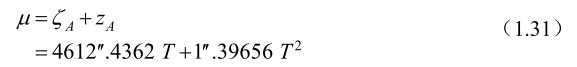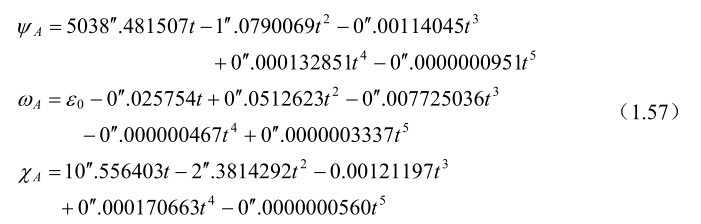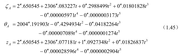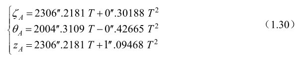 式(1.26)中的岁差常数ζ A ,z A 和θ A 的计算公式为: