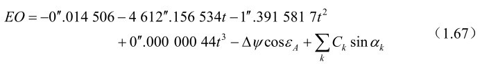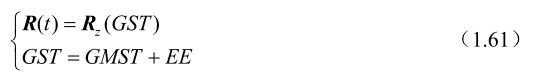与地球自转角不同,格林尼治真恒星时GST 是从真春分点起量的,它与ERA的关系可以写为