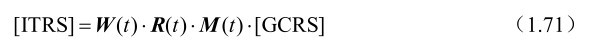 在IAU2000规范下,地心天球参考系到地球参考系之间的转换过程由式(1.41)表述为