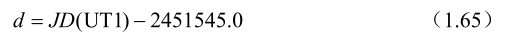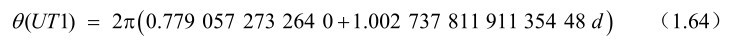 式(1.62)中的θ(UT 1)是地球自转角 ERA,它是世界时UT 1的线型函数,计算公式为