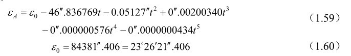 其中平黄赤交角的计算公式为