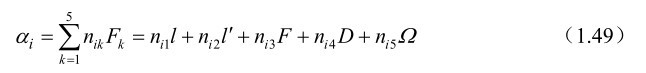 式中n i k 是整数,5个与太阳、月亮位置有关的基本幅角F k 由式(1.50)~式(1.54)表达,即