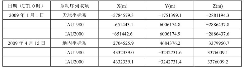 和相应的二分差(定义与原赤经章动 Δμ有微小差别,但老规范仍按赤经章动 Δμ计算),以及地心天球坐标系与地固坐标系中位置矢量的转换(1月1日0时对应的是地心天球坐标系到地固坐标系