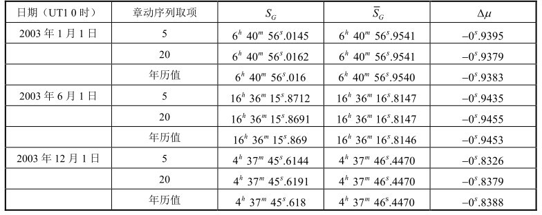 表1.5 世界时0时对应的格林尼治真恒星时S G 和平恒星时 S G
