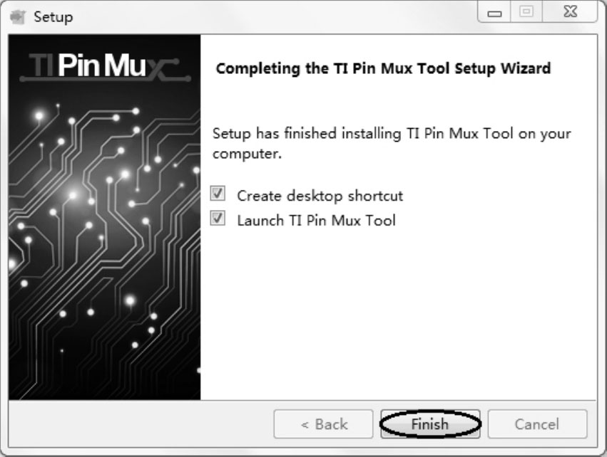 (5)单击“Finish”(完成)按钮,创建桌面快捷方式,并执行PinMux。