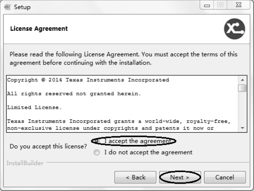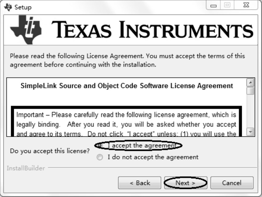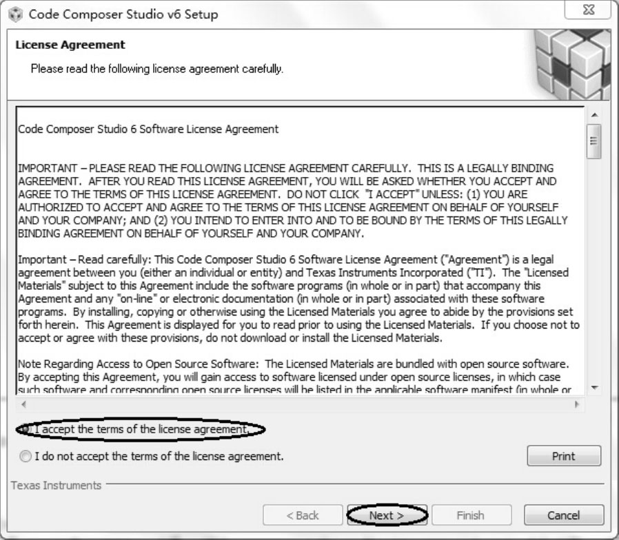 (1)双击ccs_setup_6.1.0.00104.exe,显示如图2.6所示的许可协议。