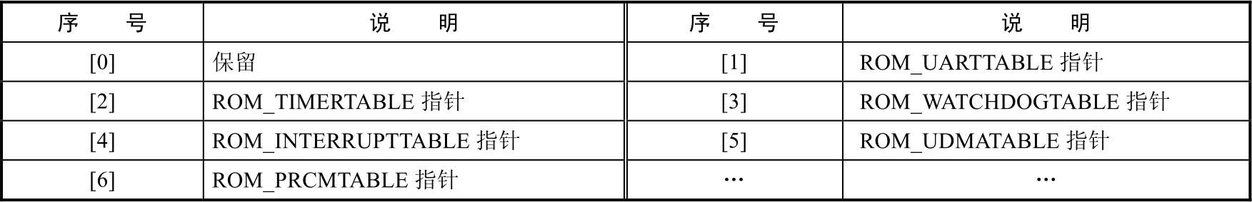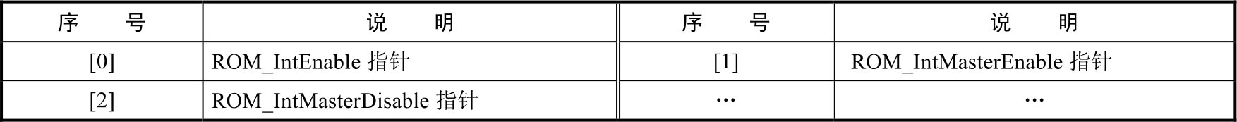 ROM中的主子两级表解决了API的访问入口问题,主表中每个外设对应一个指向各自子表的指针,子表中每个相关外设的API对应一个指向各自API的指针。