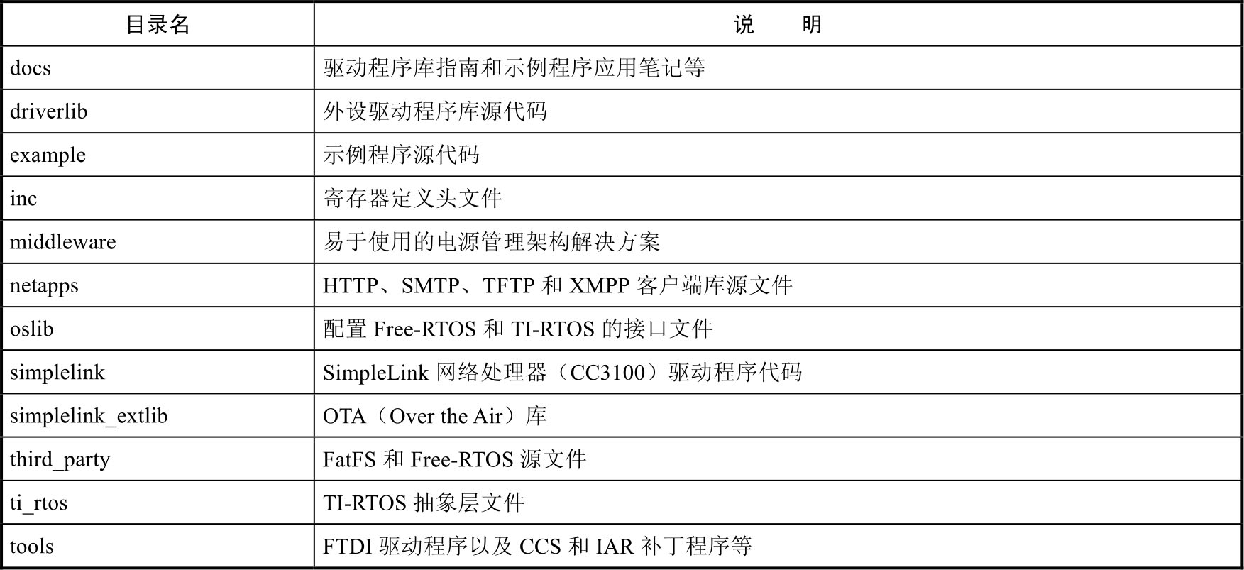 CC3200 SDK目录结构及其内容说明如表2.1所示。