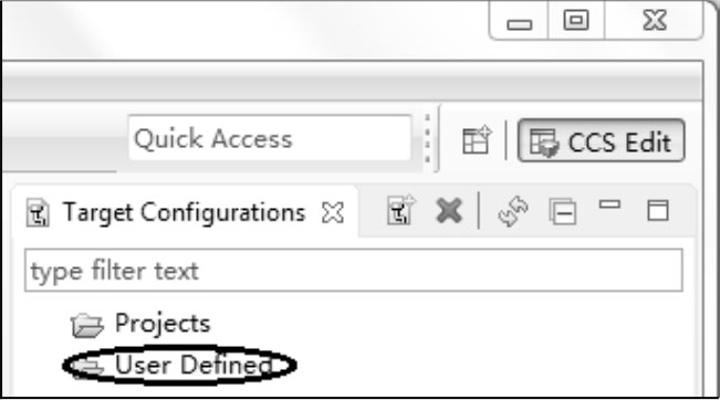 (1)单击“View”(视图)→“Target Configuration”(目标配置),打开如图2.18所示的目标配置视图。