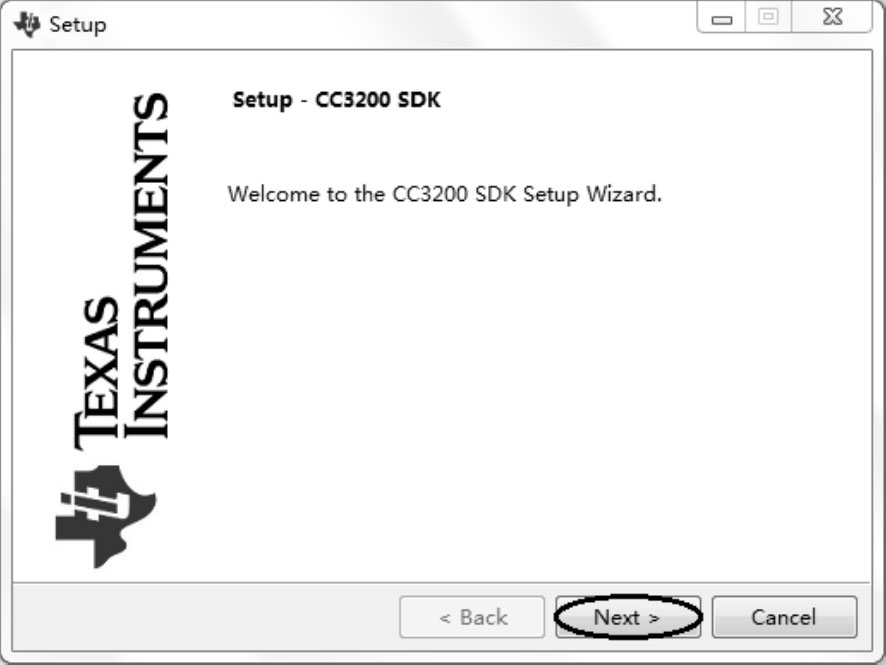 (1)双击“CC3200SDK-1.1.0-windows-installer.exe”,显示图2.1所示安装向导。
