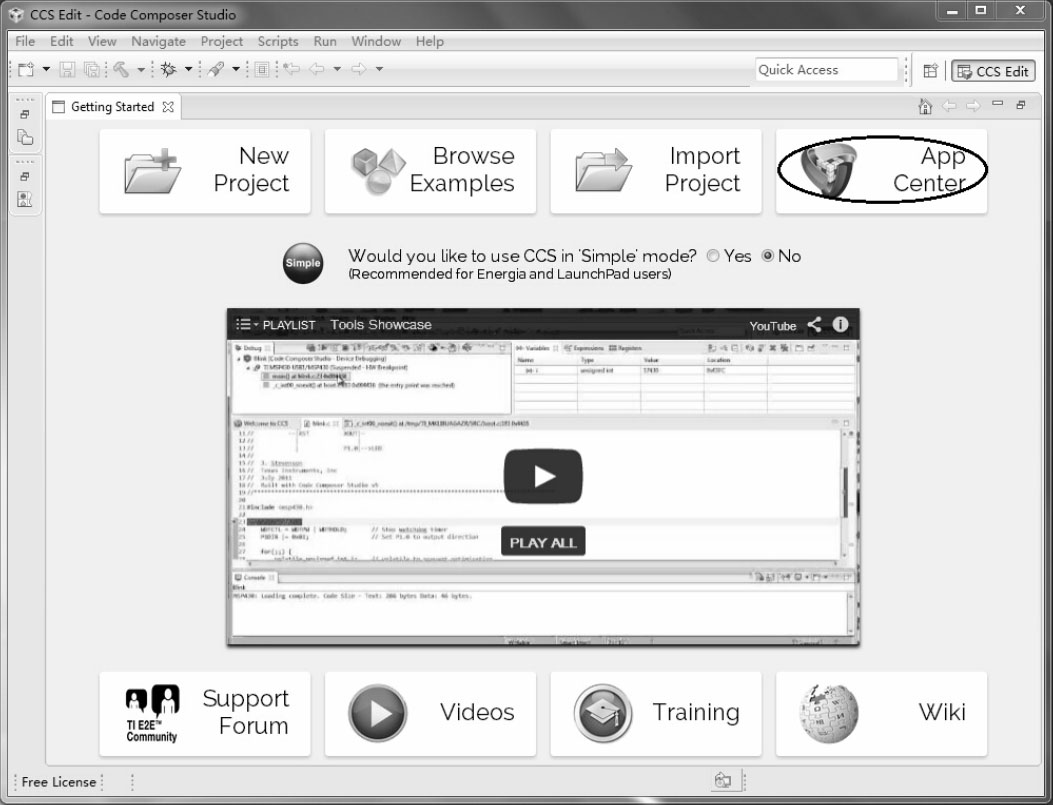 CCS使用的主要内容是编辑源文件、生成和调试目标文件等,其中最主要的是调试目标文件。下面以导入项目为例,简单介绍CCS的使用。