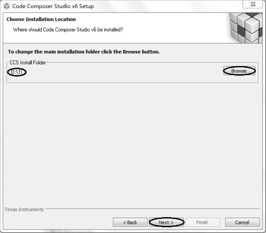 (3)接受默认安装目录或单击“Browse”(浏览)按钮修改安装目录,单击“Next”(下一步)按钮,显示如图2.8所示的处理器支持。