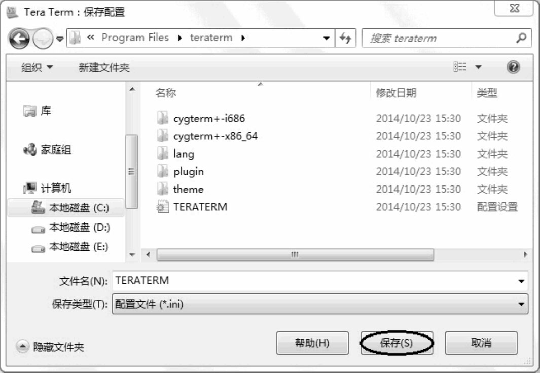(18)单击Tera Term“设置”菜单下的“保存配置”菜单项,打开如图2.45所示的保存配置对话框。