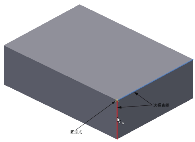 (2)固定点 :单击某个工作点、中点或顶点创建固定点。例如,在视图中选择如图1-33所示的边线中点,弹出“三维移动/旋转”对话框,可以在对话框中重新定义点的位置,单击“确定”按钮,在浏览器中显示图钉光标符号,如图1-34所示。