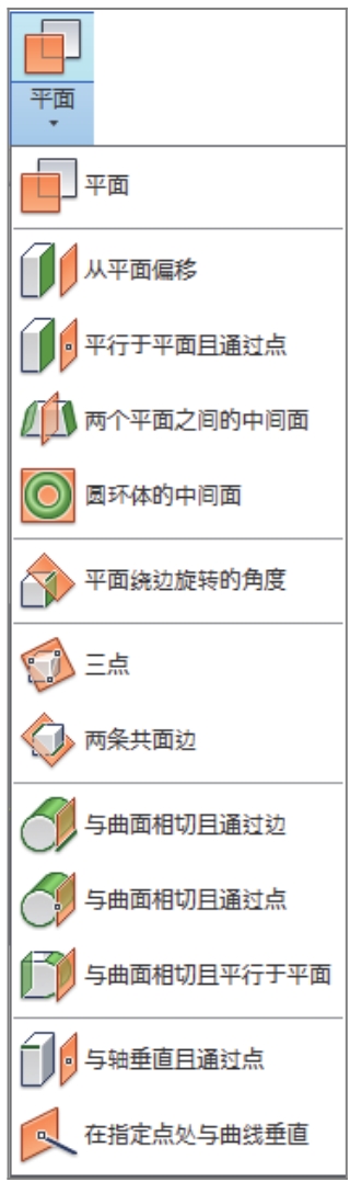 (11)两个平面之间的中间面 :在视图中选择两个平面或工作面,创建一个采用第一个选定平面的坐标系方向并具有与第二个选定平面相同的外法向的工作平面,如图1-60所示。