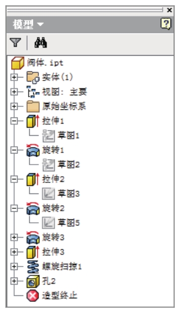 在一个零件环境或部件环境中对一个零件进行编辑时,用户可在任何时候新建一个草图,或编辑退化的草图。当在一个草图中创建了需要的几何图元以及尺寸和几何约束,并且以草图为基础创建了三维特征,则该草图就成为了退化的草图。凡是创建了一个基于草图的特征,就一定会存在一个退化的草图,图2-1所示为一个零件的模型树,可清楚地反映这一点。