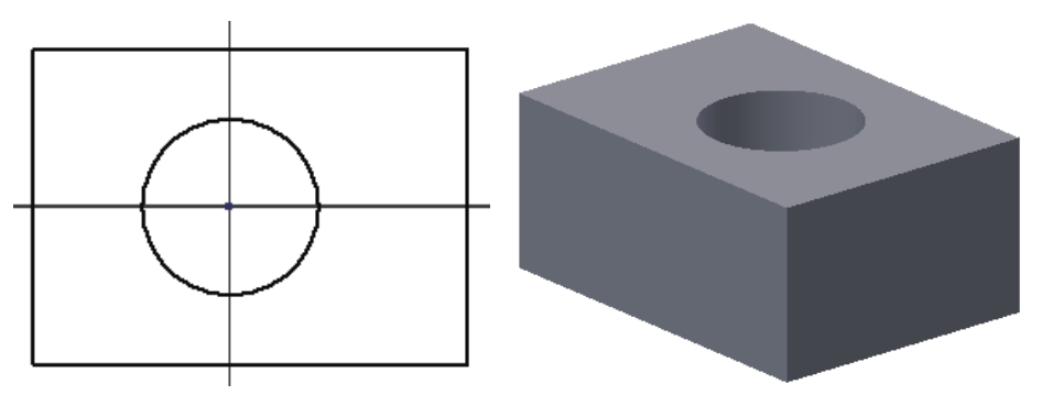 在“Autodesk Inventor”中,绘制草图是创建零件的第一步。草图是截面轮廓特征和创建特征所需的几何图元(如扫掠路径或旋转轴),可通过投影截面轮廓或绕轴旋转截面轮廓来创建草图三维模型。图2-2所示为草图以及由草图拉伸创建的实体。