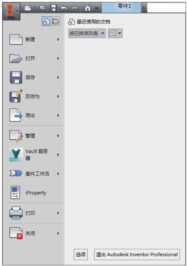(3)功能区:功能区以选项卡形式组织,按任务进行标记。每个选项卡均包含一系列面板。可以同时打开零件、部件和工程图文件。在这种情况下,功能区会随着激活窗口中文件的环境而变化。