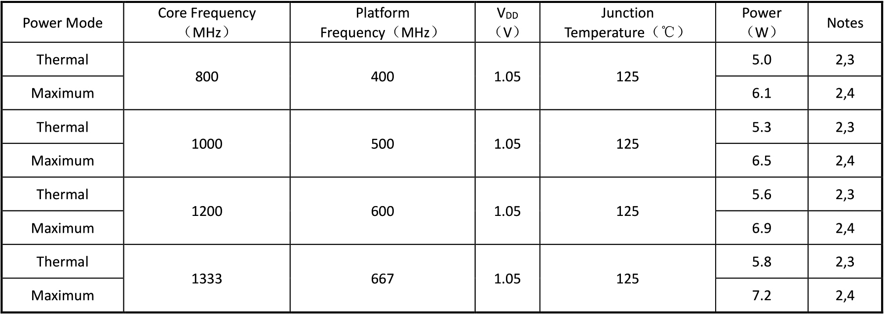 当进行硬件系统的电源系统设计时,需要考虑各芯片最大负荷时消耗的功率,并预留一定的电源设计冗余(一般预留 20%冗余)。Freescale P2020功率消耗情况 [3] 如表1-2所示。