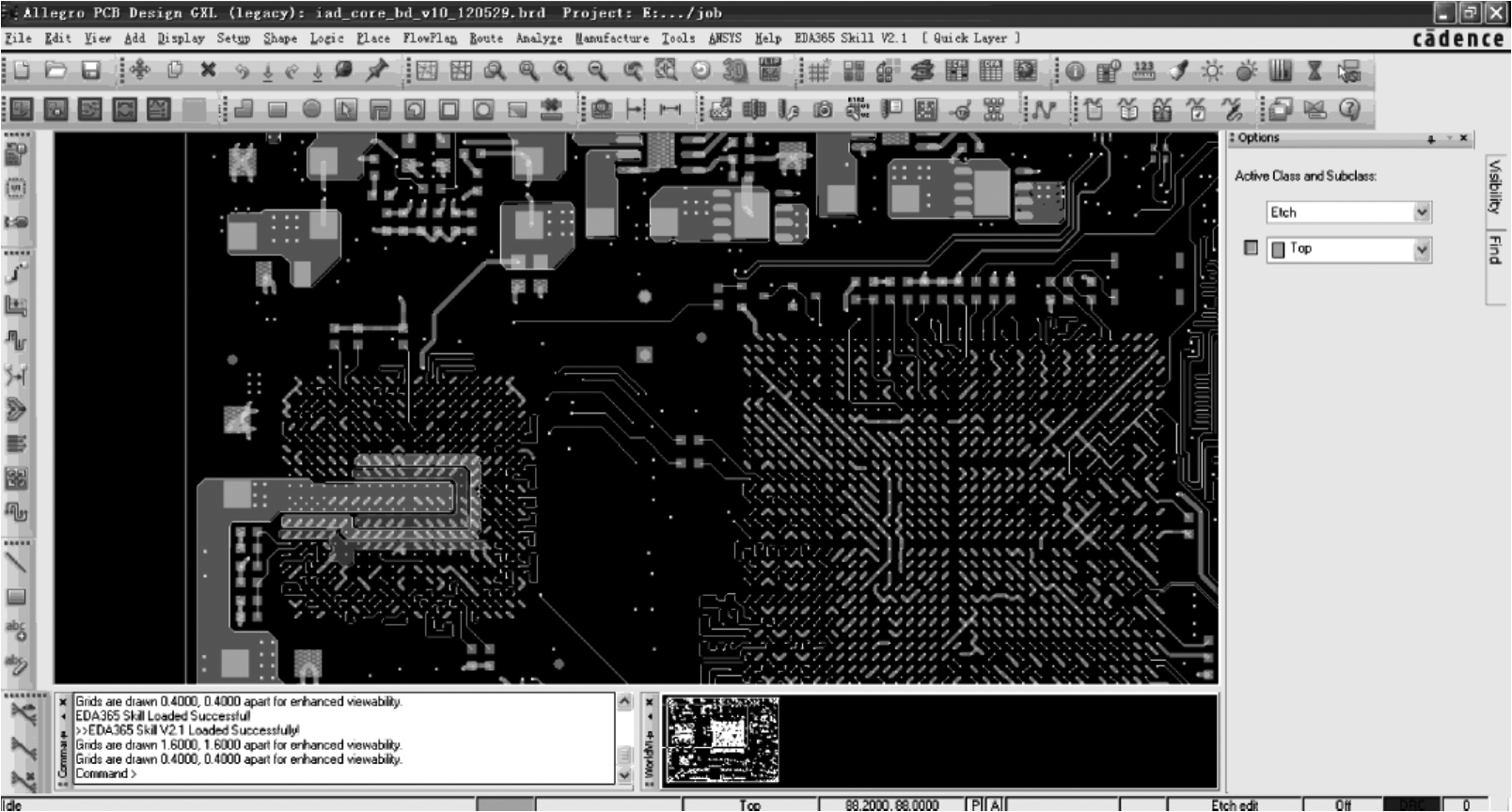 (2)PCB Editor:PCB Editor是一个完整的PCB设计软件(其界面如图2-57所示)。PCB Editor为创建和编辑复杂、多层、高速、高密度的PCB设计提供了一个交互式、约束驱动的设计环境。