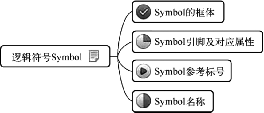 原理图的设计是将各个IC及外围电路以满足一定逻辑关系进行连接。原理图的设计需要各个器件的逻辑符号Symbol(如图2-52所示),器件的逻辑符号又由引脚和符号框体组成。为进行原理图的设计,需要:①画出逻辑符号Symbol的框体(一般是长方体形状);②根据Datasheet上器件引脚的属性在Symbol的框体上添加各个引脚,并配置引脚的属性,如电源引脚、地引脚、输入引脚、输出引脚、输入/输出引脚和时钟引脚等;③为了便于区分不同的器件,需要给器件添加参考编号和名称(参考编号是唯一的,名称是对逻辑符号的进一步说明);④将建好的逻辑符号Symbol存库,并调入原理图编辑界面,进行电路设计。原理逻辑符号Symbol的组成如图2-53所示。
