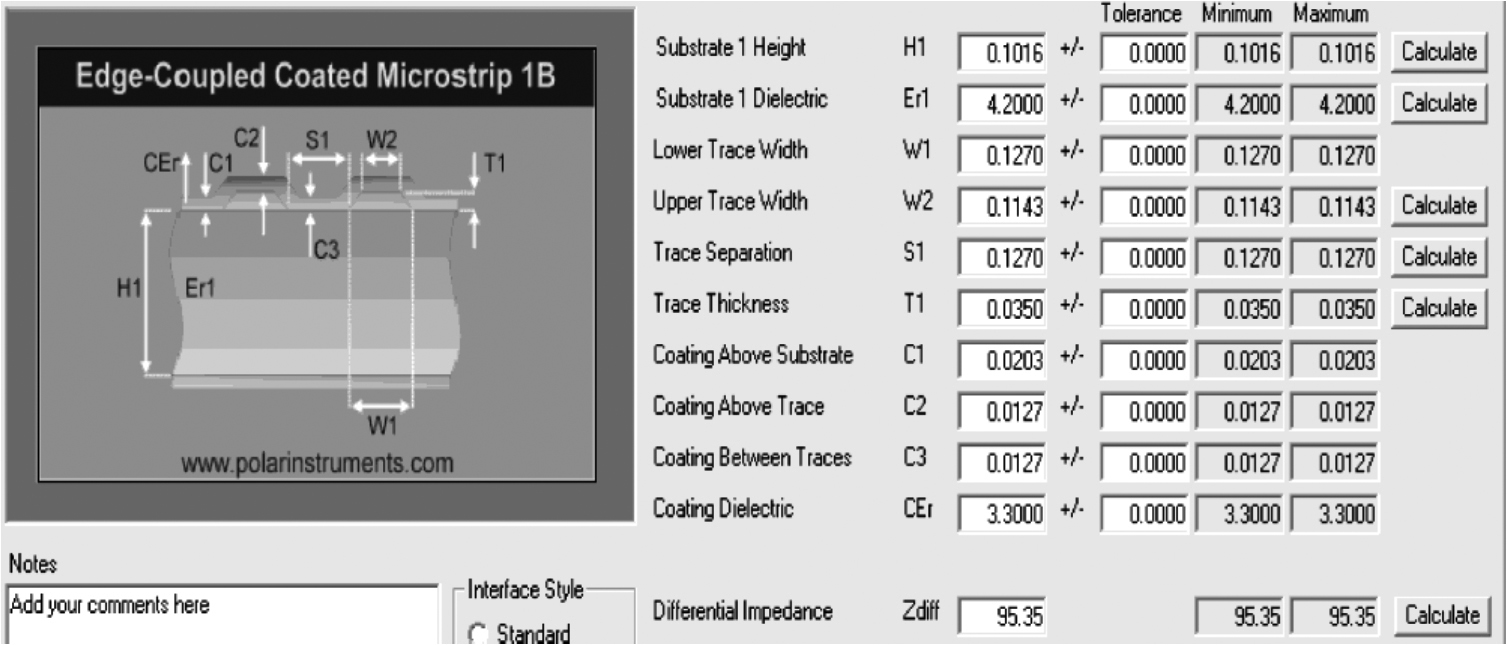 图2-97 L1_Sig层USB差分走线阻抗控制计算