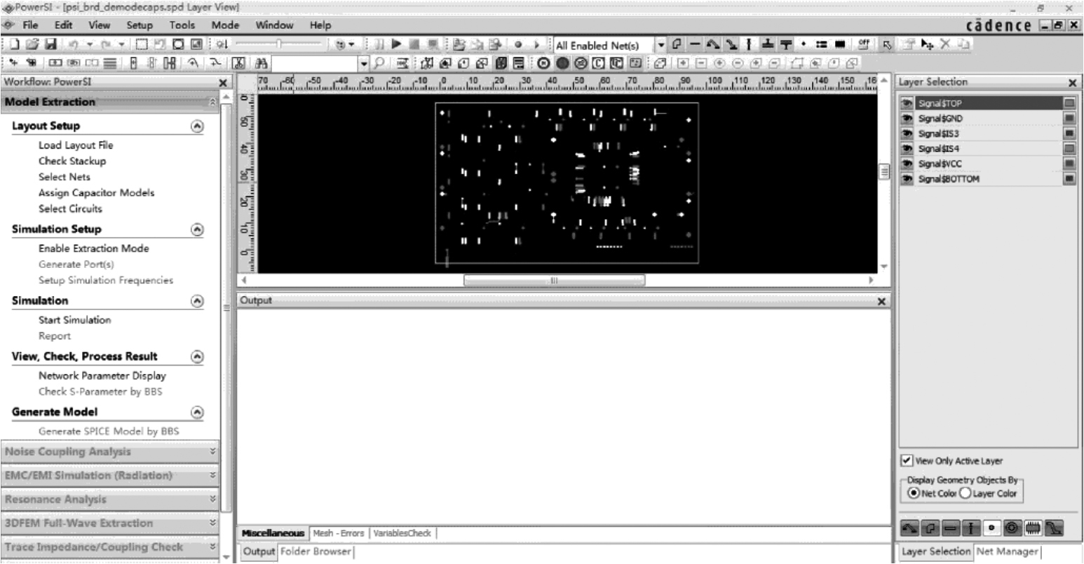 (2)PowerSI是先进的频域分析工具,可用于提取IC封装或PCB整板信号、电源的频域阻抗参数和S参数,还可以提取随频域变化的空间噪声的分布,其界面如图2-61所示。