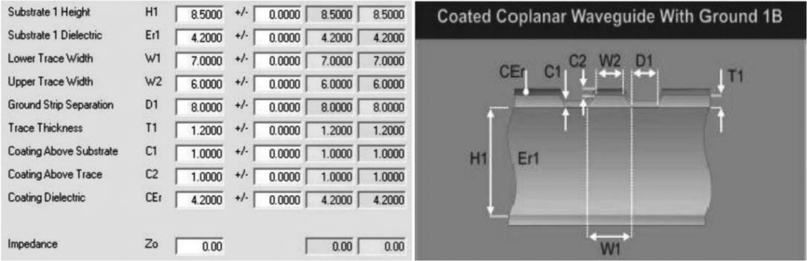 (5)外层单端共面地:Coated Coplanar Waveguide With Ground 1B,如图2-85所示。