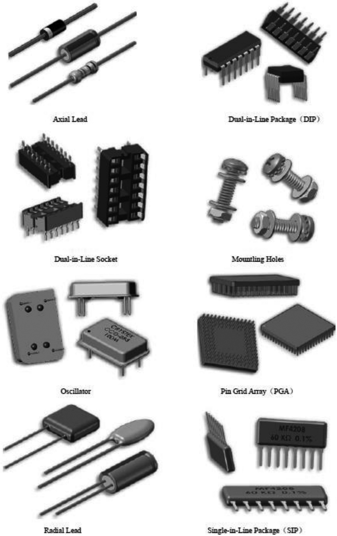 (2)PTH Calculator可以计算的封装包括Axial Lead、Dual-in-Line Package(DIP)、Dual-in-Line Socket、Mountling Holes、Oscillator、Pin Grid Array(PGA)、Radial Lead、Single-in-Line Package(SIP)、Test Point、Transistor Outline(Flange Mount)、Transistor Outline(Cylindrical)和Wire。封装样式如图2-74所示。