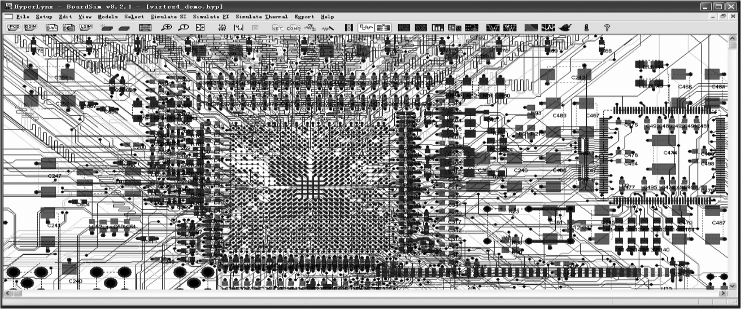 (1)Speed2000是通用时域工具,是第一个也是现今唯一一个可以进行IC封装或PCB整板时域电磁仿真的时域分析工具,可以进行SI、PI和EMC等分析,其界面如图2-60所示。