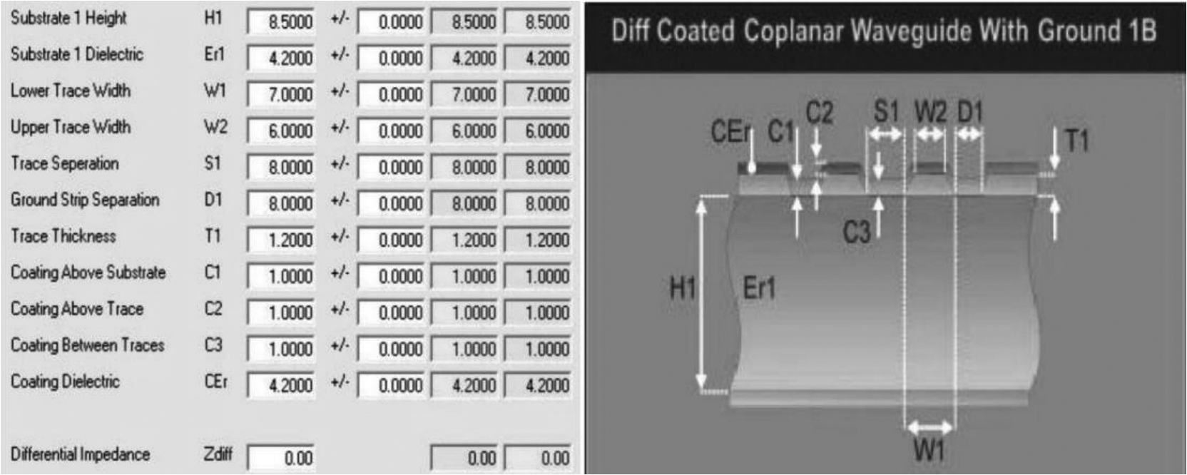 (6)外层差分共面地:Diff Coated Coplanar Waveguide With Ground 1B,如图2-86所示。