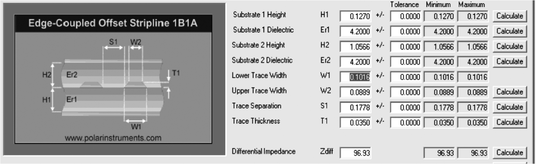 (4)内层差分:Edge-Couled Offset Stripline 1B1A,如图2-84所示。