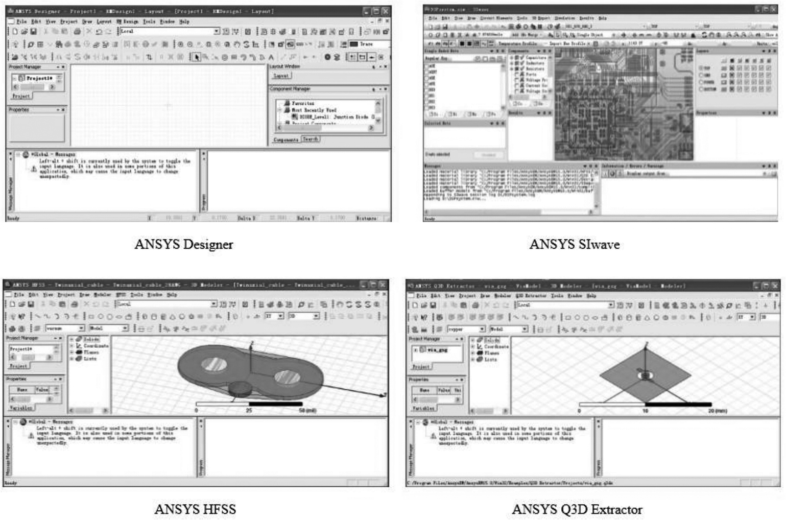 图2-100 ANSYS Designer、SIwave、HFSS和Q3D Extractor的工作界面