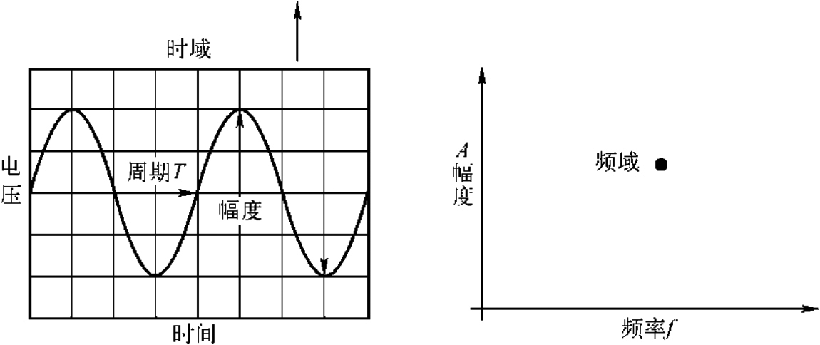 图3-3 时域中的正弦波及其对应的频域分布