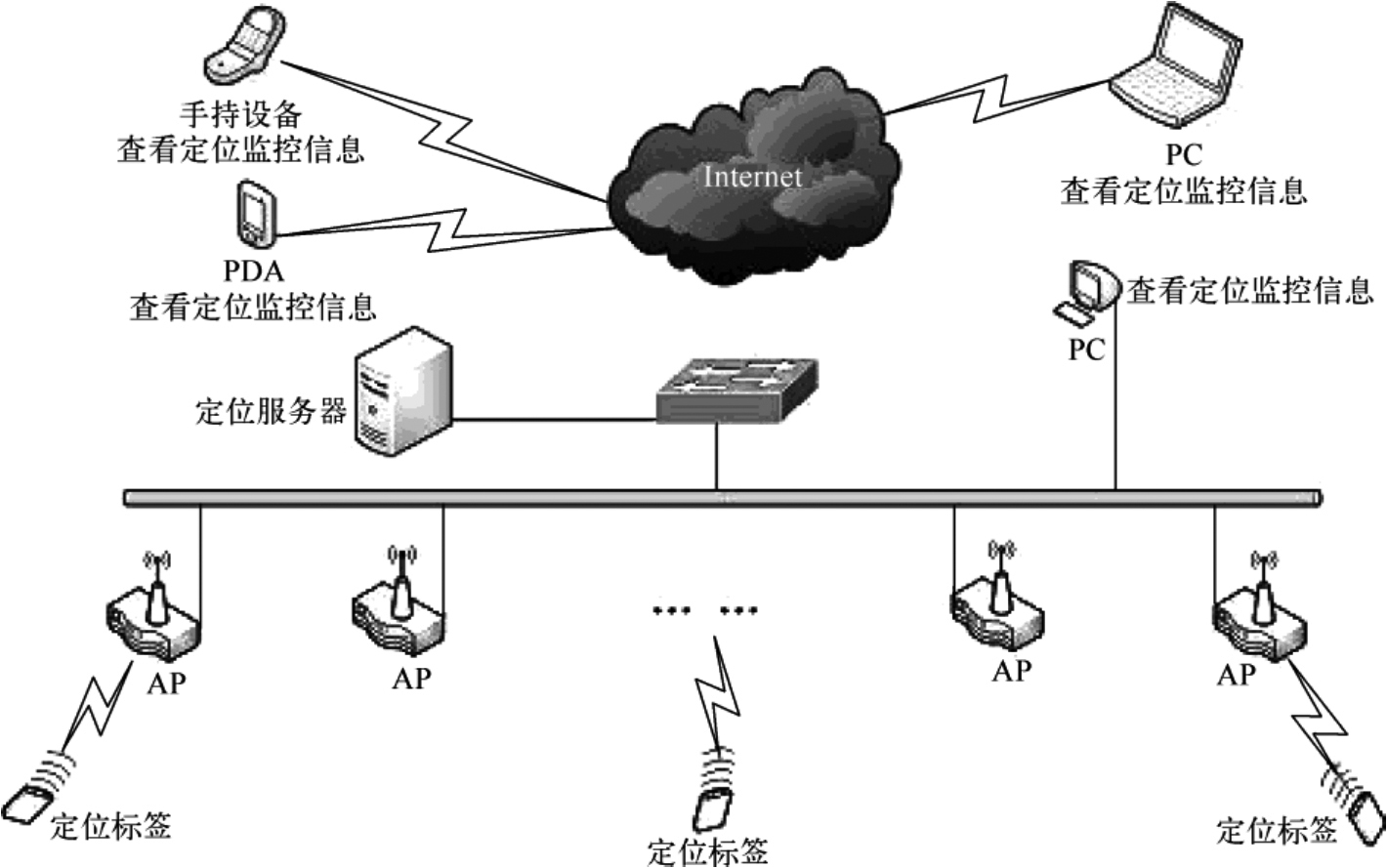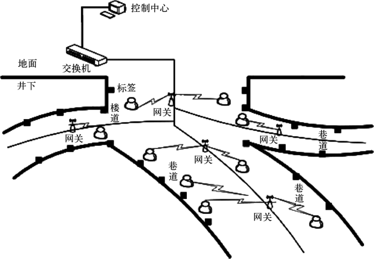 图1-3 矿井作业人员无线局域网实时定位系统网络拓扑结构图 OrCU9CnPeWgE2QhvMGrBrFtoylXN6+pbFVF1WQAisGyGyTmU09hpKUF577fp1STq