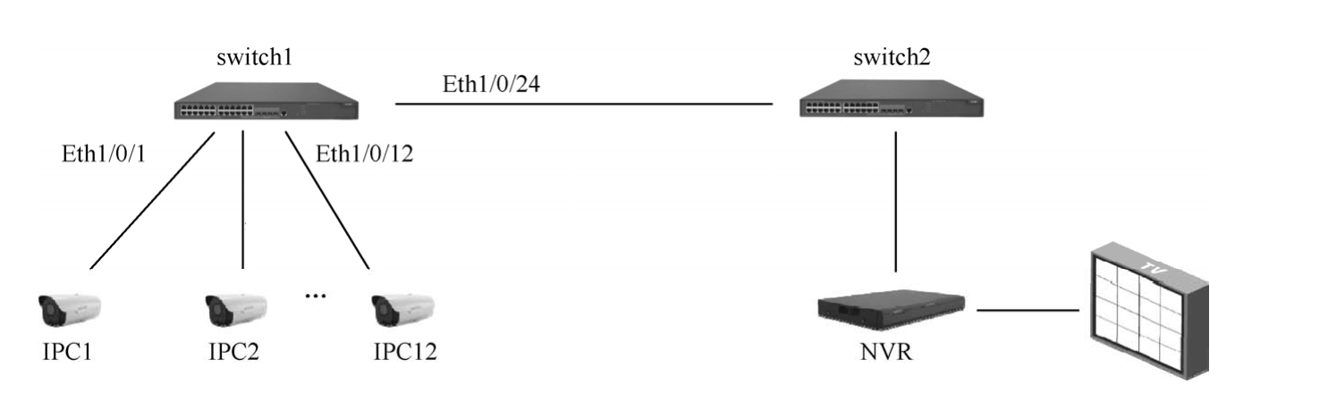 老U也算是小半个专家了,他首先怀疑是网络带宽不足,算了算,一台高清网络摄像机占8Mbps的带宽,交换机之间百兆互联,可以接入100/8=12.5台网络摄像机,总共接入了12台,如图1-31所示。带宽分明足够了啊,这到底是怎么回事呢?