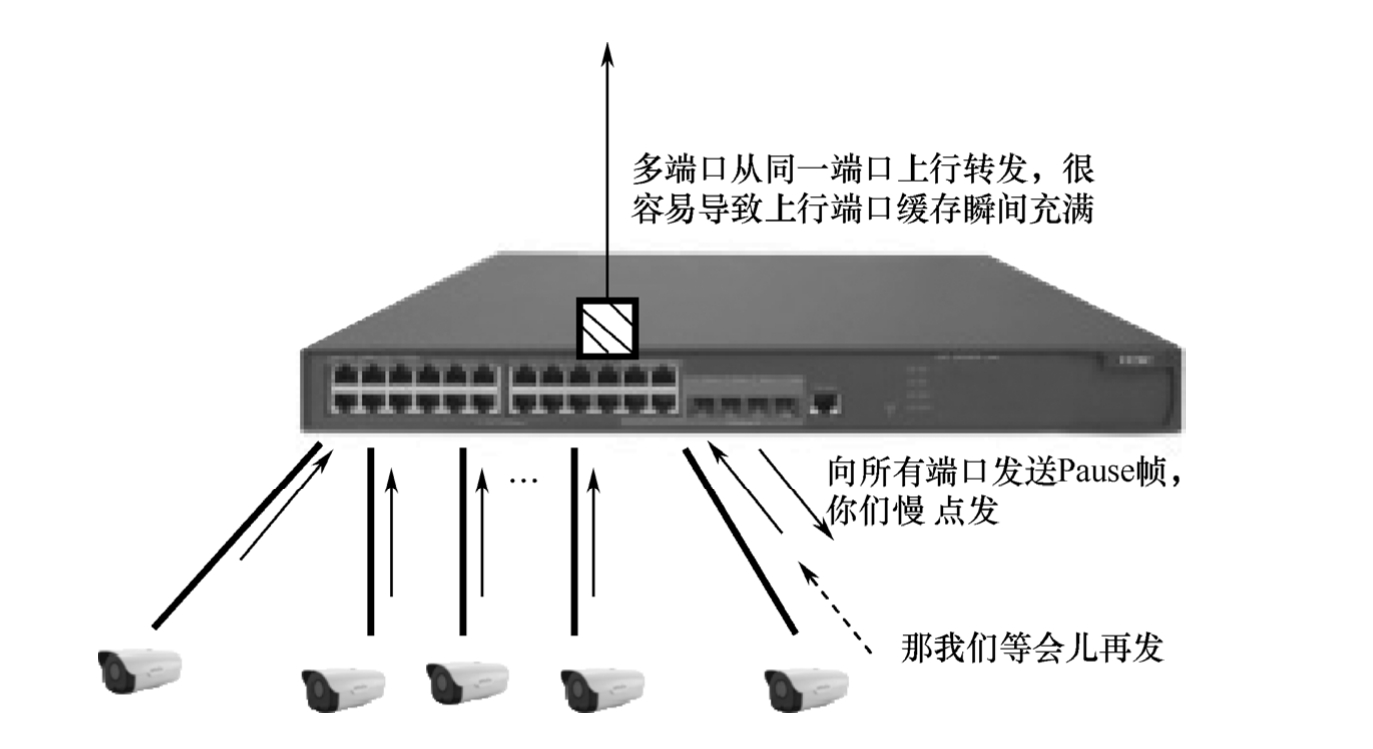 这节中说:通过Pause帧,避免多个监控终端瞬间流量过大引起交换机端口的缓存溢出,从而使交换机端口速率利用率达到95%以上,不明白,怎么理解?