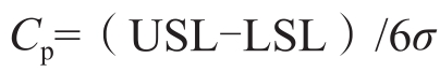 其中,σ标准偏差,反映了数据各点到其平均数距离的平均值,即正态分布“钟”形图形的宽窄,越窄说明工艺能力越强;USL为用户规格上限,LSL为用户规格下限。