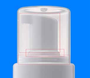 修图最重要的是看结构。图中我们已经用箭头注明,这个白色透明的瓶子分为三大部分:瓶盖、瓶颈、瓶身。这三大部分再往下细分,又可以罗列出喷嘴、喷嘴的基座、瓶身内筒、吸管等。
