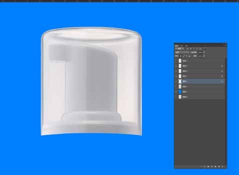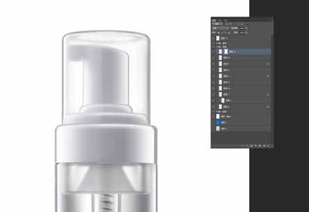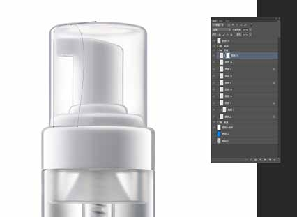 23 现在,我们要在白底透明的瓶盖内部做一个白色透光的效果,这样瓶盖会显得更通透。