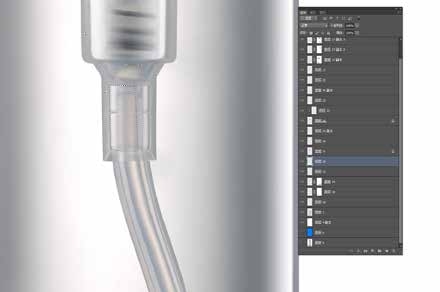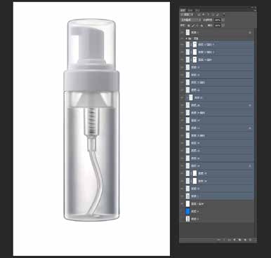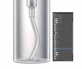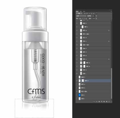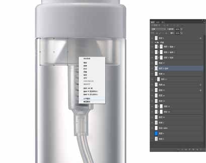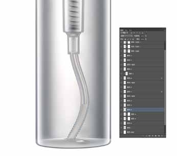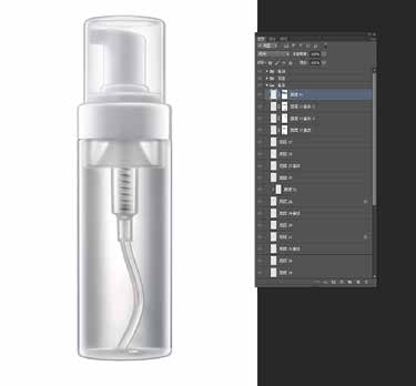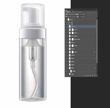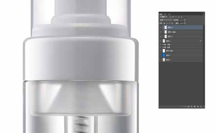在新一轮的修图过程里,我们将塑造瓶子部分“面”的光感(立体效果)。