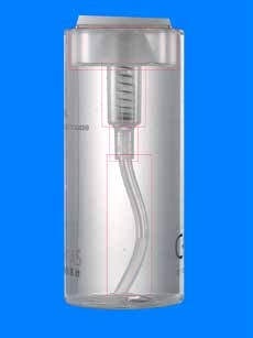 对于瓶底图层,按下Ctrl键并单击以激活它(即载入选区),往上轻移,然后新建一个图层(此图层的大小就是蚂蚁线选区那么大,它的下边缘就在轻移之后比瓶底高几个像素的地方),用白色柔边画笔(硬度为0,不透明度为50%)在底边轻擦,形成底边高光带。