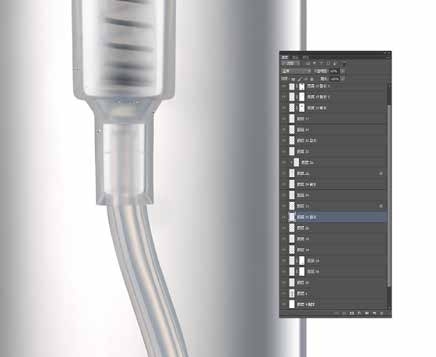 59 在刚做出的白高光带内侧边缘用钢笔工具勾出一个选区,建立新图层,吸取旁边喷嘴的灰色。