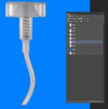 因此,喷嘴3个部分的图层,你要记得在右边“图层”面板中把它们按相应的顺序上下排列,一个压住另一个,形成无缝拼合。