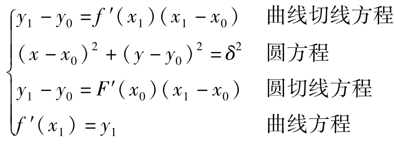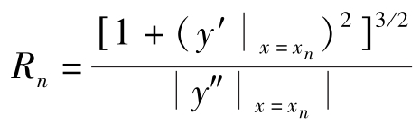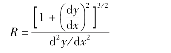 式中,R P 为曲线y=f(x)在P 1 点的曲率半径;R为逼近圆的半径。