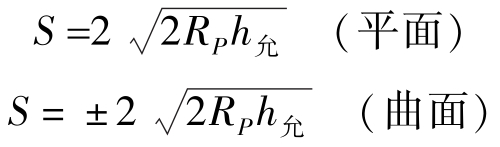 式中,R P 为曲面上加工点P处的曲率半径。加工凸曲面时,式中取“+”号;加工凹曲面时,式中取“-”号。实际上,曲面的曲率半径为一个变量,如果曲面半径差别不大时,在实际编程中可以曲率最大处为标准,然后根据表面粗糙度要求及球头铣刀半径值计算出行距S,最后采用等行距法来编制程序,或者分区、分行距进行加工。