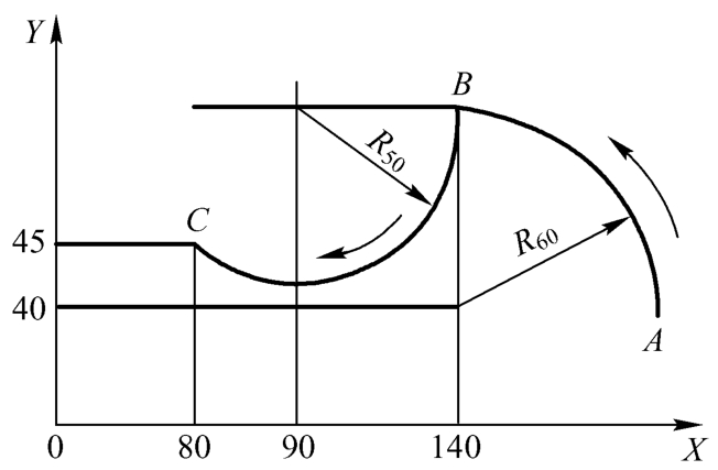 (6)如图2-30所示,圆弧的起点为A,试用某种圆弧插补的编程格式编写加工该圆弧的程序。