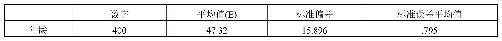 从表5-5可以看出统计样本为400,平均值为47.32,标准偏差为15.896,标准误差平均值为0.795。