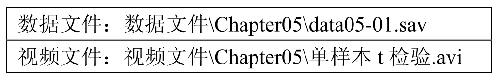 (1)打开数据文件“data05-01.sav”,选择“分析”→“比较平均值”→“单样本T检验”弹出如图5-4所示的“单样本T检验”对话框。