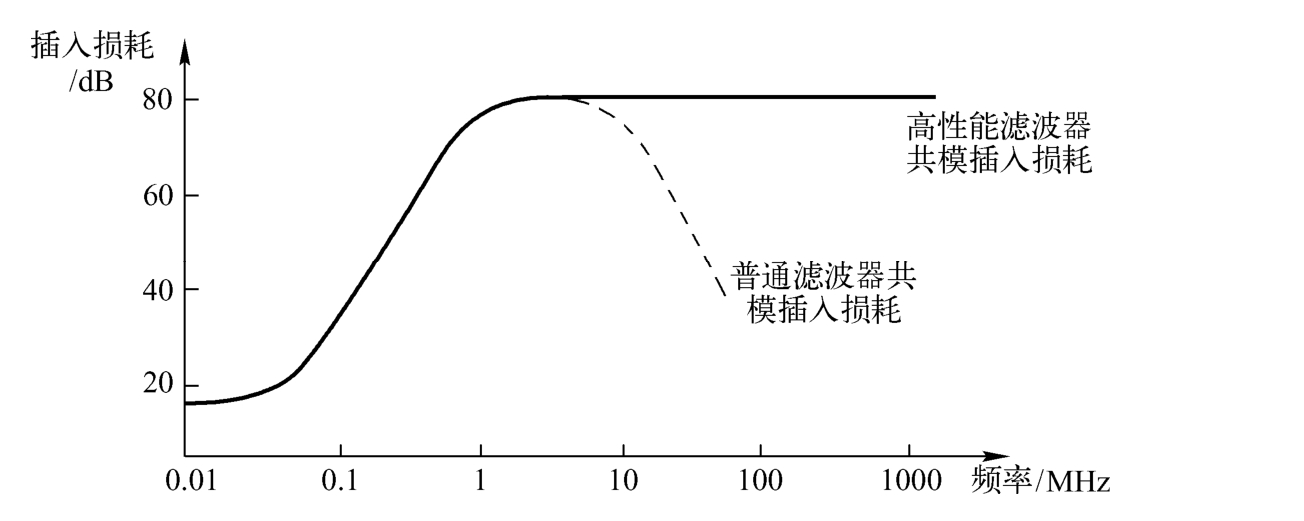 滤波器的电路结构和参数只决定了滤波器在低频段(1MHz 以下)的特性,而滤波器的高频特性与电容的种类(普通电容、三端电容、穿心电容等)、电感的构造(磁芯、绕制方法等)、电路的安装方式等因素密切相关。通常高频特性对设备的辐射发射影响更大。